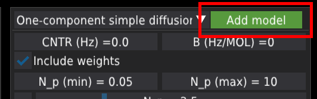 At the top of the central window, there is a droplist to select the mathematical model to fit the FCS data. A detailed description of each available model is given in the Fitting models section.