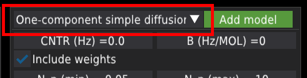 Once the model is selected, the set of new fields related to the fitting parameters will appear below the model selection panel.