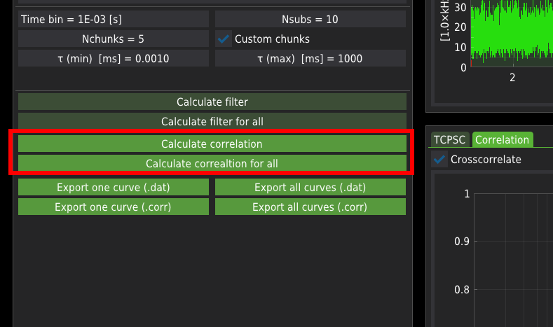 Press the Calculate correlation to calculate correlation curves for a single file.